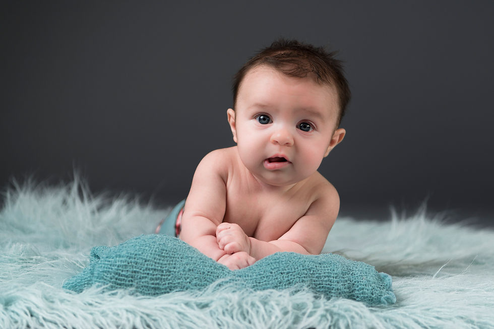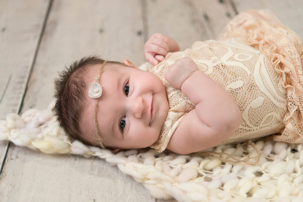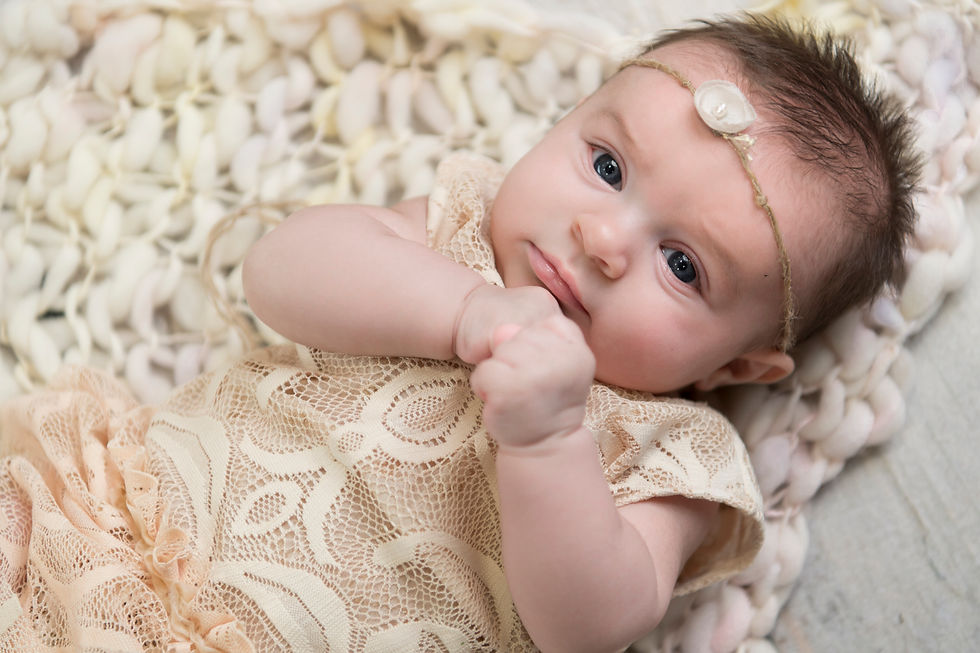 These three month old baby pictures are just stunning! Her eyes catch the light! Sometimes babies cry during photography sessions, but don't worry about that! Baby is boss and we will eventually get a smile out of them! We take lots of breaks during our sessions, to feed baby, play, change diapers, or comfort. It's all part of taking newborn baby pictures. So when you come, relax! There's no rushing!