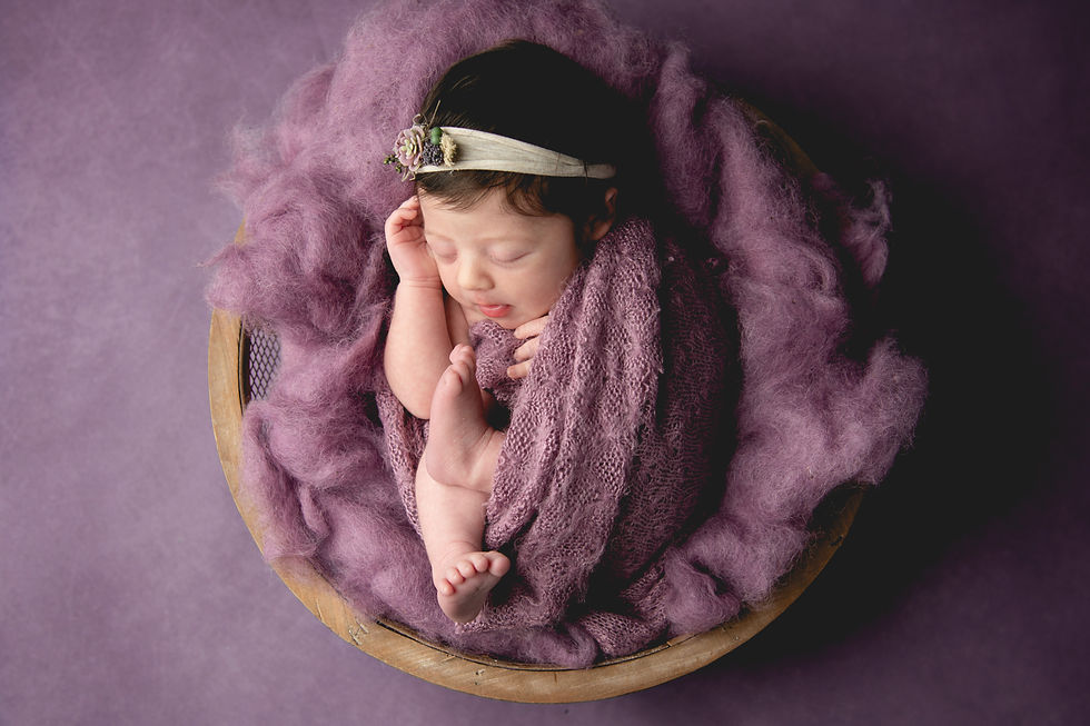 Tip #2: You don't need fancy clothes! Wraps are sweet and cute! BUT if you want newborn clothing in your pics, leave the prints behind! Again, solid colors with lots of textures bring the attention back to baby's sweet face. For this reason, I love to hand make custom outfits for my clients ages 0-12 months! This little plum romper was custom made with a little tutu for this session! You can find other little outfits on my etsy store!