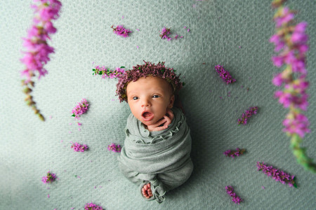 This gorgeous sea MIST backdrop from Hello Little Props was a perfect set up, and the ruffle wrap from Steele Stitches Photography Props kept all the girly vibes! And don't forget about that gorgeous floral crown from Dreamy Lavender Props. I really take time to get all the details right.